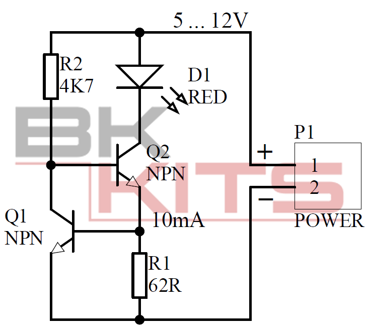 Az 5-12V közötti tápfeszültség polaritás helyes bekapcsolása után, az áramkör azonnal üzemkész.