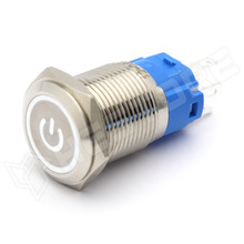 V16PMF-BL Vandálbiztos nyomógomb, Ø16mm, 12...24V AC/DC kék LED power szimbólum, SPDT, ON-(ON), 1 stabil pozíció, IP65