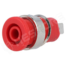 BS-324-LG-R Banán aljzat, 4mm, 32A, nikkelezett, panelre, piros 1+: 514 Ft