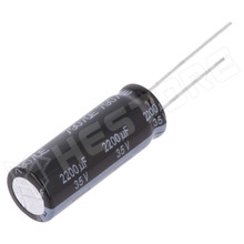2200uF/35V Kondenzátor, elektrolit, 2200µF, 35V DC, 7.5mm, Ø16 x 25mm, -40...105°C