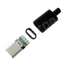 TYPE-C-PLUG-BK Csatlakozó, USB-C, USB 2.0, fogadó oldalra, 56KΩ felhúzó ellenállás, dugó, apa, 4 pin, 5V, 2A, fekete 1+: 230 Ft