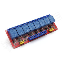 RELC-8CH-5V-UNI 8 csatornás relé modul, 5V, opcionális vezérlés, optocsatolóval