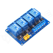 Univerzális 12V relé modul, 4 csatorna, optocsatolóval, vezérlő jel: Opcionális (jumper)