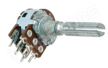 Potenciométer, 6mm tengely, sztereo, középállású, lineáris, 100kΩ
