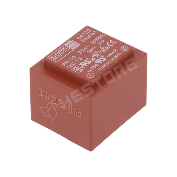 PCB transzformátor, kiöntött, EI30, 2VA, 230V AC, 18V, 111mA
