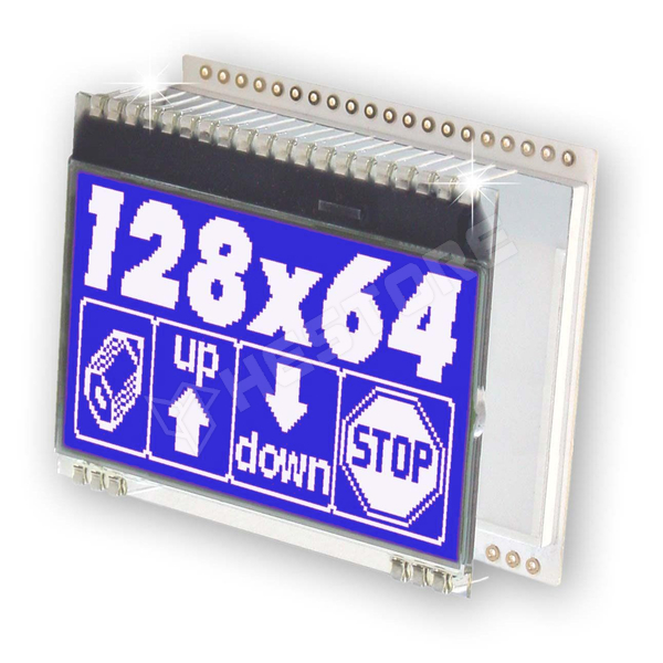 Grafikus LCD kijelző, STN Negatív, kék, 128x64 ChipOnGlass
