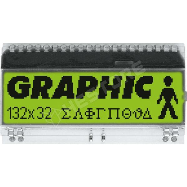 Grafikus LCD kijelző, STN Pozitív, reflektív, sárga-zöld, 132x32