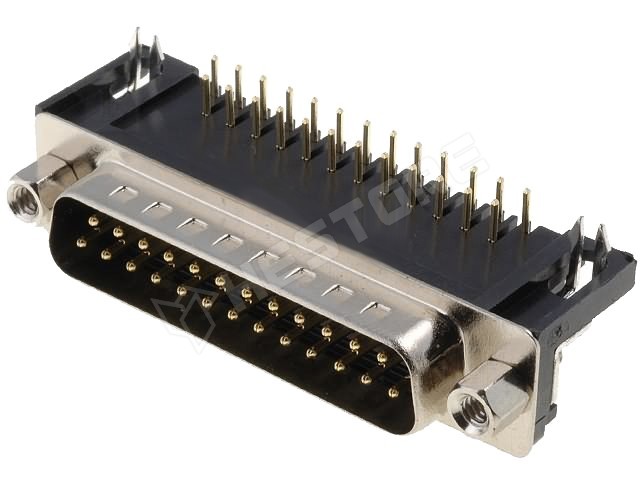 Csatlakozó, D-Sub, apa, aljzat, 25pin, 90 fokos, THT, 7.2mm