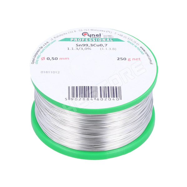 | Ötvözet tartalma | Sn99,3Cu0,7 |