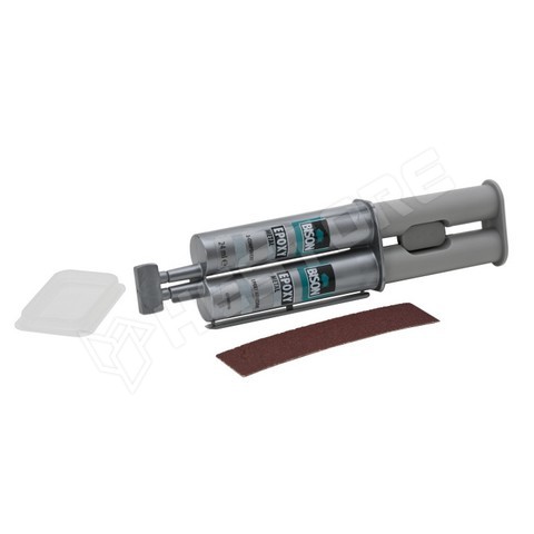 Fémszínű, strapabíró, kétkomponensű epoxi ragasztó.