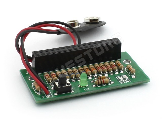 Ebből a készletből a kereskedelmi forgalomban több változatban is kapható, már-már klasszikusnak tekinthető LED vizsgáló építhető meg. A készülék a vizsgált LED működőképességen túl színét és fényerejét is megmutatja különböző meghajtó áramok függvényében. Az áramkör működőképességét (elem töltöttségi szint) a tesztelő gomb megnyomásakor egy zöld színű LED mutatja.Tekintettel arra, hogy a különböző típusú LED-ek különböző nyitófeszültséggel rendelkeznek, a készülék az áram/fényerő tekintetében csak hozzávetőleges értéket mutat.