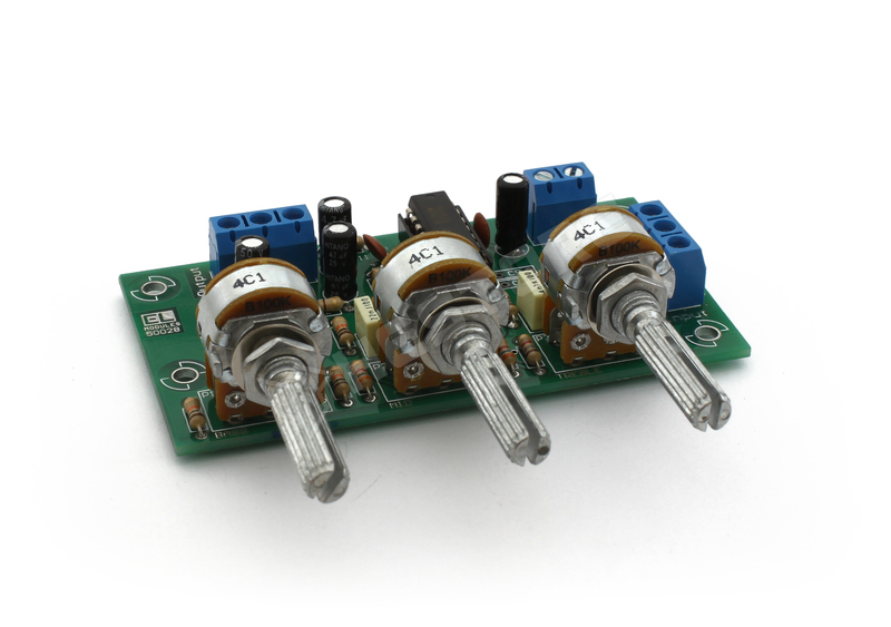 Ebből a KIT-ből egy 3-sávos aktív hangszínszabályozó készíthető, mely a klasszikus Baxandall-szűrő topológiájára épül. Három potenciométerrel állítható a mély, a közép és magas tartomány vágása, illetve kiemelése. Az áramkör egyszerűsége ellenére elég jó paraméterekkel rendelkezik, s bár a potencióméterek hatása nem független egymástól, átlagos felhasználásra teljesen megfelelő megoldást nyújt.