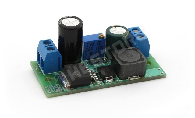 Ebből a KIT-ből egy univerzálisan használható, paraméterezhető, jó hatásfokú kapcsolóüzemű tápegység készíthető, mely kis méreténél fogva könnyen beépíthető. A kapcsolás az alkalmazott LM2596-ADJ jelű integrált áramkör gyári ajánlása (kis módosítással). A panel a kompakt kivitel érdekében SMD alkatrészek felhasználásával készült. A kapcsolásban a kimeneti feszültség érték beállítása egy trimmer ponetcióméterrel vagy igény szerint 2-2 tagra bontott ellenállás osztóval történhet az 1,23V .. 37V tartományban.