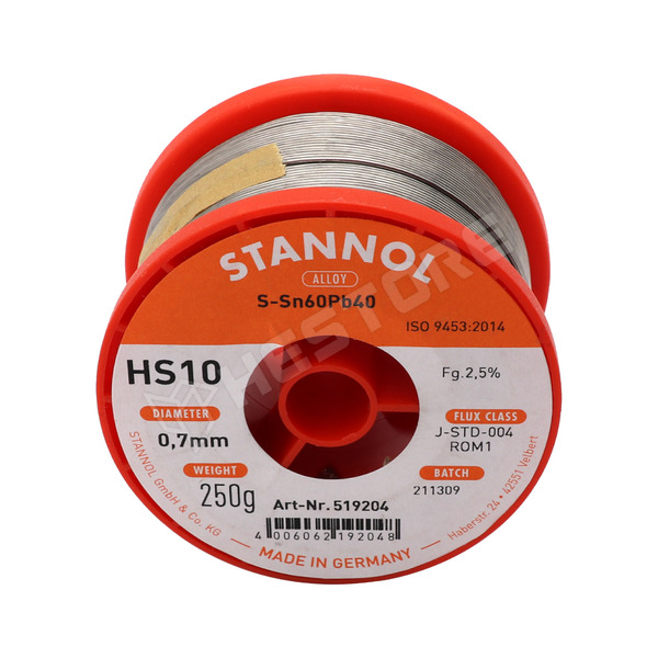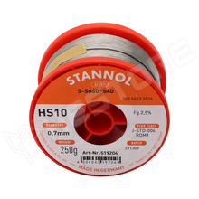 HF10 - halogén tartalmú, természetes gyanta (kolofónium, fenyőgyanta) alapú, no-clean folyasztószer töltetű huzal. Terülés és elektromosan biztonságos maradványok szempontjából kiváló tulajdonságokkal rendelkezik. A vasmentes anyagokat nem korrodálja. Az elektronikai ipar legkedveltebb típusa.