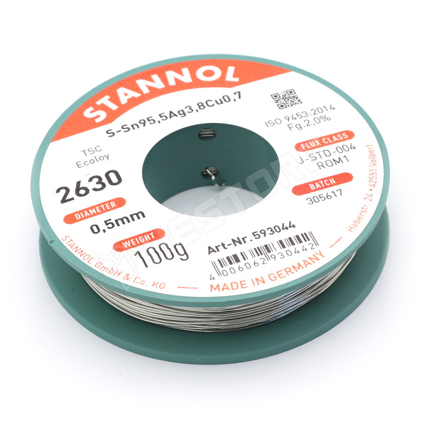 2630 - a legaktívabb halogéntartalmú no-clean folyasztószer taralmú huzal. Olyan helyeken is alkalmazható, ahol a HS10 már nem felel meg. Ideális nehezen forrasztható felületekhez és nagyobb kötésekhez (vastagabb rézvezeték, stb.).