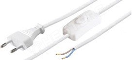 LK-1 WH Kábel, hálózati csatlakozóval (dugvilla) + kapcsolóval, 2m vezetékkel, fehér