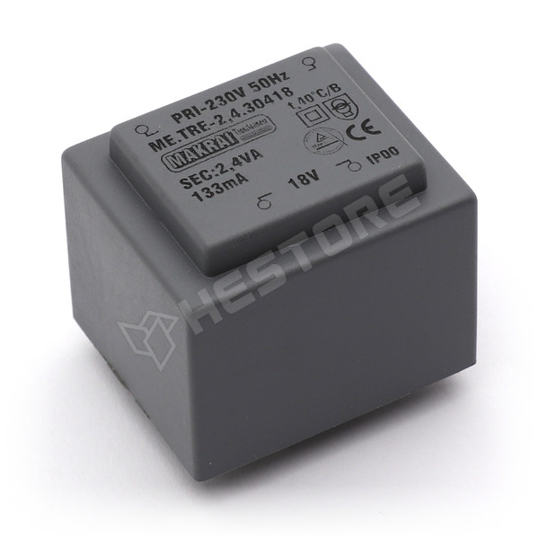 PCB transzformátor, kiöntött, EI30, 2.4VA, 230V AC, 18V, 133mA