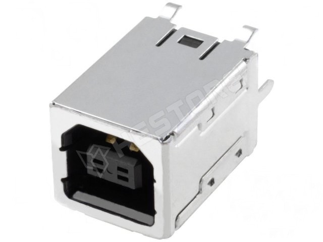 Csatlakozó, USB-B-F, NYÁK, 90°