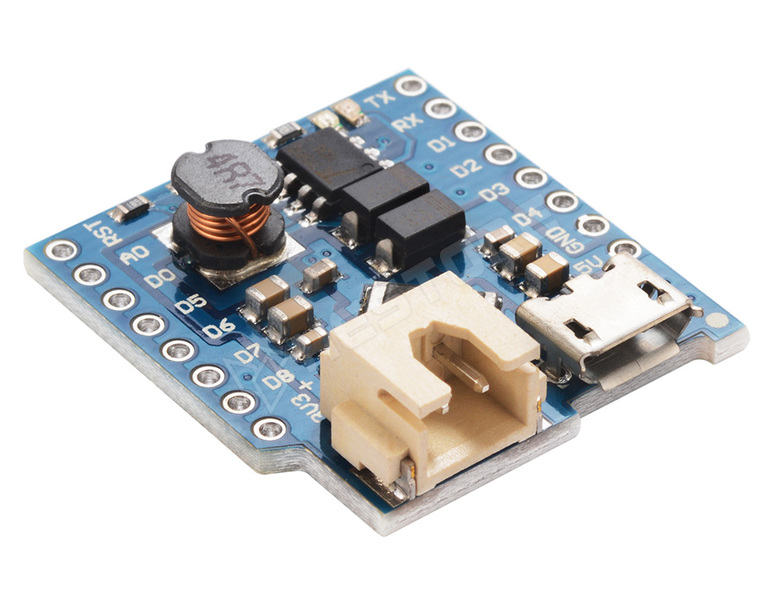 WeMos D1 Lítium akkumulátor töltő microUSB-vel és boost converterrel