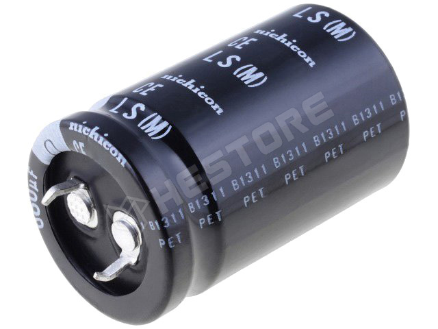 Kondenzátor, elektrolit, 680µF, 400V DC, hosszú élettartam, alacsony impendancia, nagy impulzusos áram, Ø35 x 50mm, -25...85°C