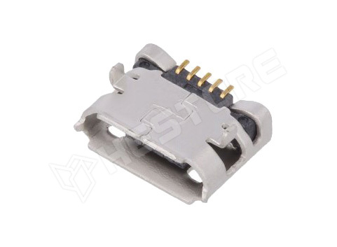 MicroUSB B aljzat, NYÁK-ra, SMD+THT, 5-pin, vízszintes, USB2.0