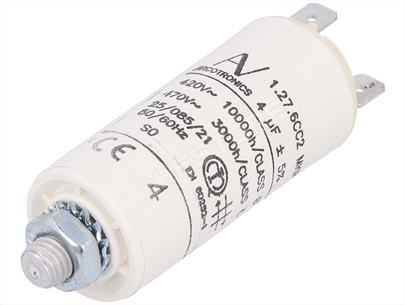 Motor kondenzátor, motorokhoz, üzemi, 4µF, 420V AC, Ø25x56.5mm, csatlakozók 6,3x0,8mm