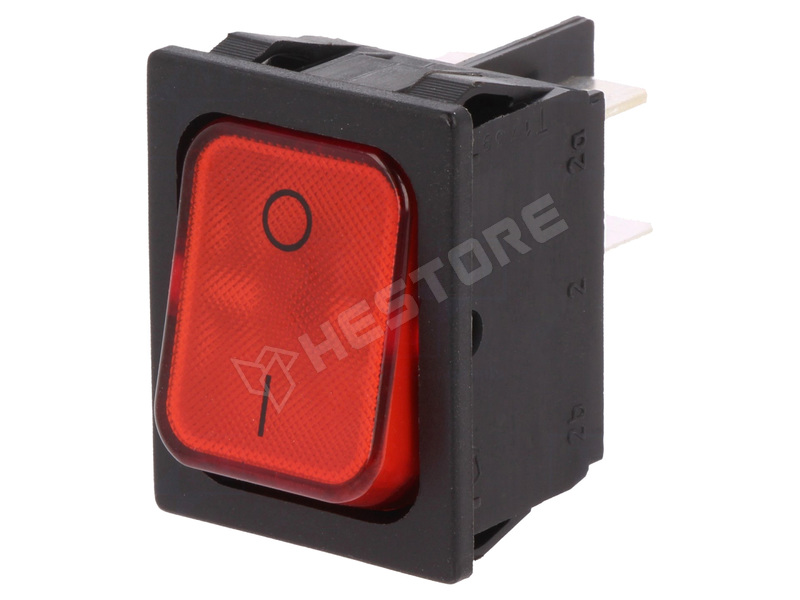 Kapcsoló, DPST, OFF-ON, 250V, 20A, IP40, piros