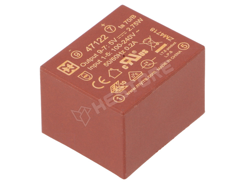 | Tápegység/transzformátor tulajdonságai | teljes terhelés melletti névleges paraméterek, teljesítmény felvétel terhelés nélkül <0,2W |