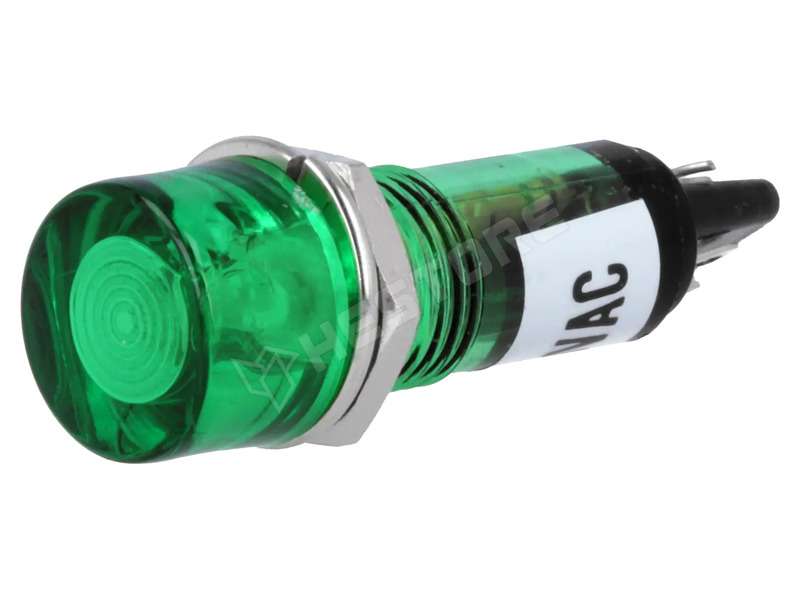 Ellenőrző lámpa, FLUO neonnal, lapos, 230V AC, Ø10mm, IP20, műanyag, zöld