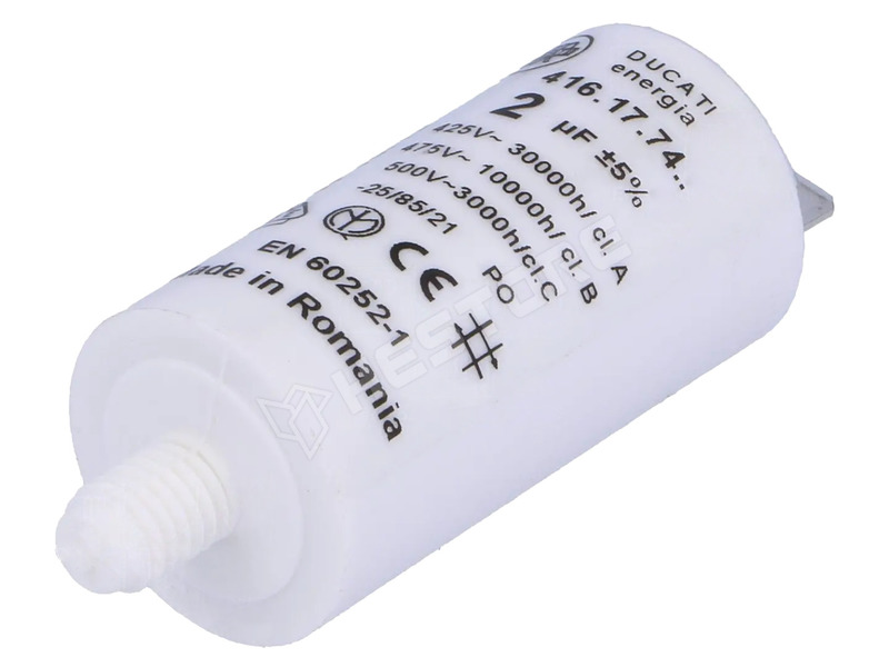 Motor kondenzátor, motorokhoz, üzemi, 2µF, 475V AC, Ø25x49mm, csatlakozók 6.3mm