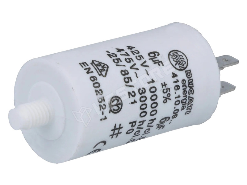 Motor kondenzátor, motorokhoz, üzemi, 6µF, 425V AC, Ø32x55mm, csatlakozók 6.3mm