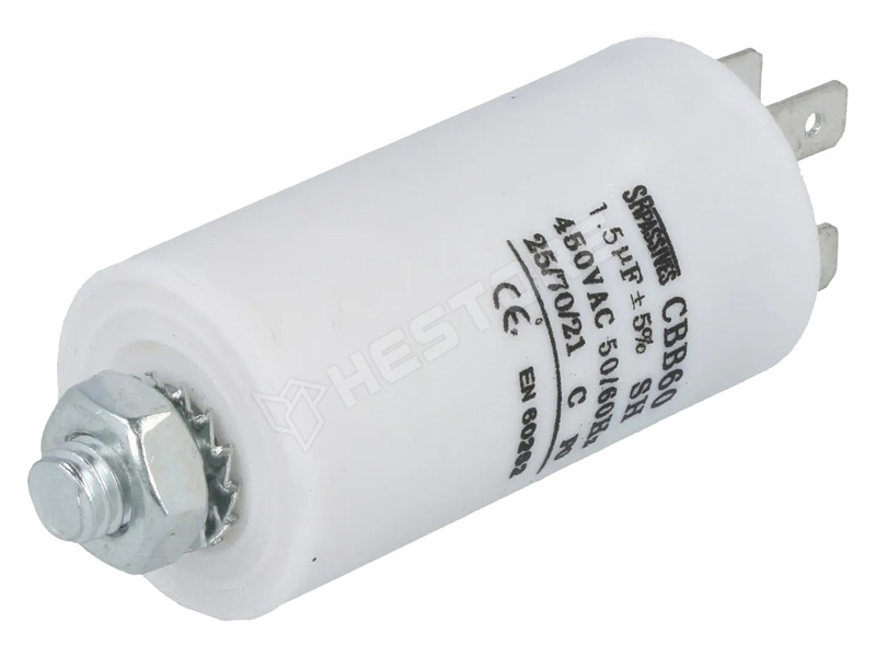 Motor kondenzátor, motorokhoz, üzemi, 1.5µF, 450V, Ø30x57mm, csatlakozók 6.3mm