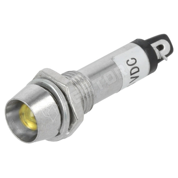Ellenőrző lámpa, LED, homorú, 24V DC, Ø8.2mm, IP40, fém, sárga