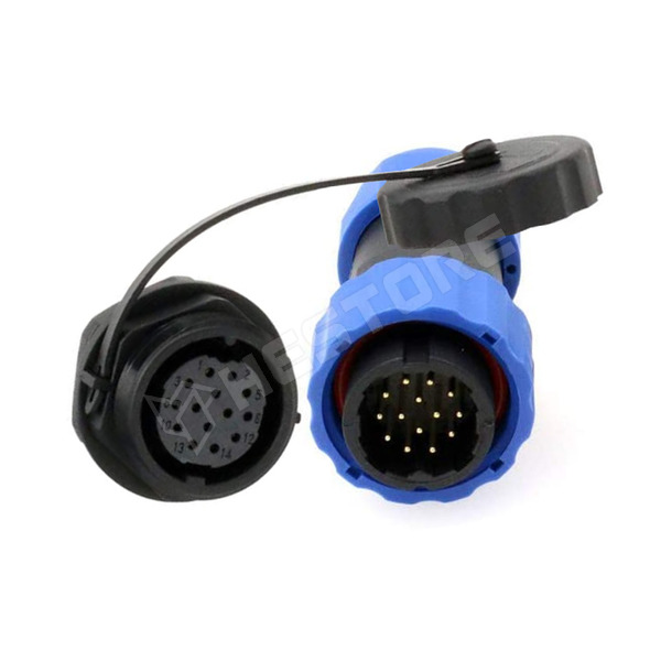 SD ipari csatlakozó pár, 14pin, anya aljzat, apa dugó, 20mm, egyenes, IP68