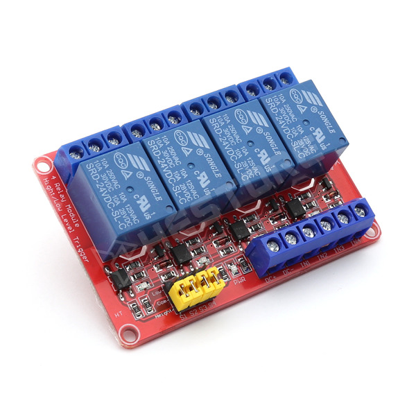 4 csatornás relé modul, 24V, opcionális vezérlés, optocsatolóval