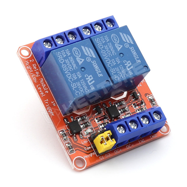 2 csatornás relé modul, 5V, opcionális vezérlés, optocsatolóval