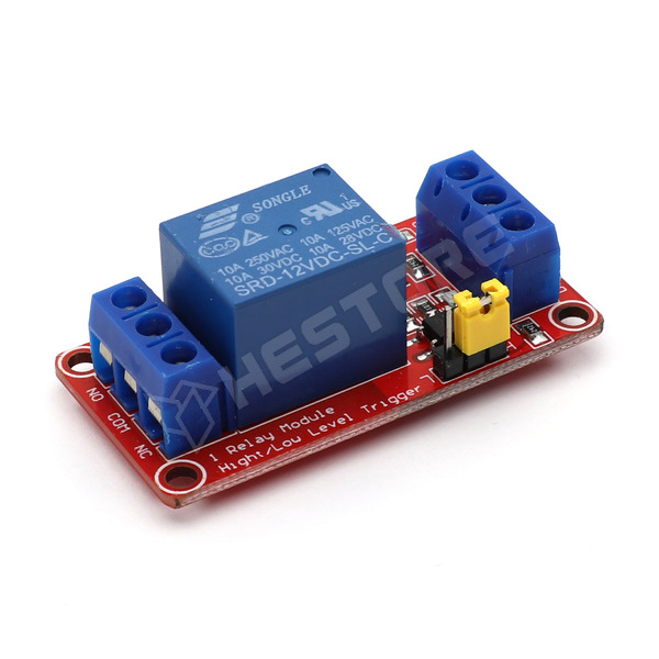 1 csatornás relé modul, 12V, opcionális vezérlés, optocsatolóval
