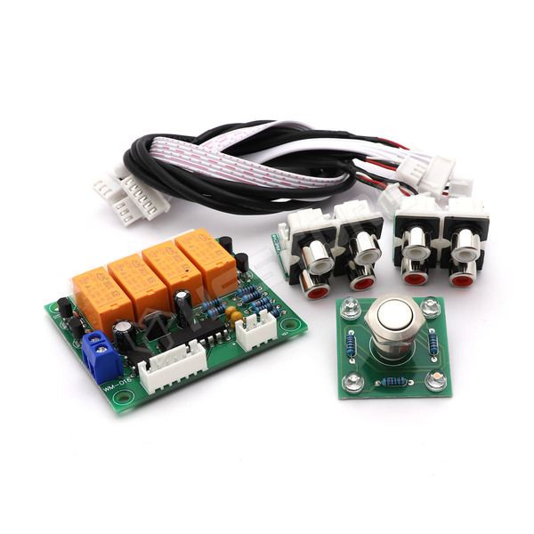 Ebből a készletből egy 4 csatornás audió bemenetválasztót forraszthatunk össze. A jelforrások között 1db nyomógomb segítségével lehet váltani. Ezt a műveletet a panelen elhelyezkedő 4 relé oldja meg, ami megfelelő rendben létesít galvanikus összeköttetést a bemenetek és az erősítő felé menő kimenet között. Üzembe helyezett állapotban az aktív csatornához tartozó LED világít.