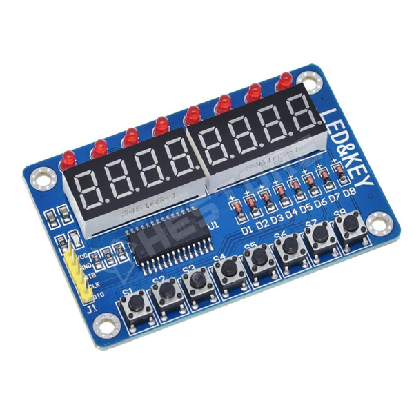 TM1638 alapú modul, 8 számjegyű 7 szegmenses kijelző LED-el és nyomógombokkal