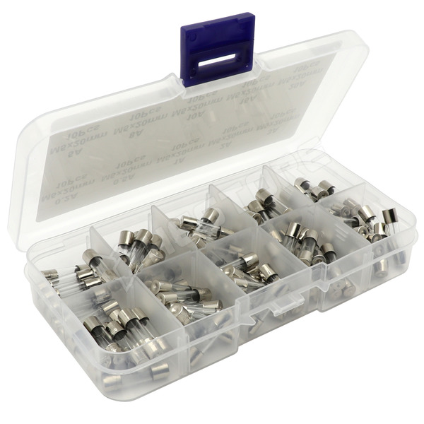5x20mm-es biztosíték készlet, 10féle, gyors, 100db-os