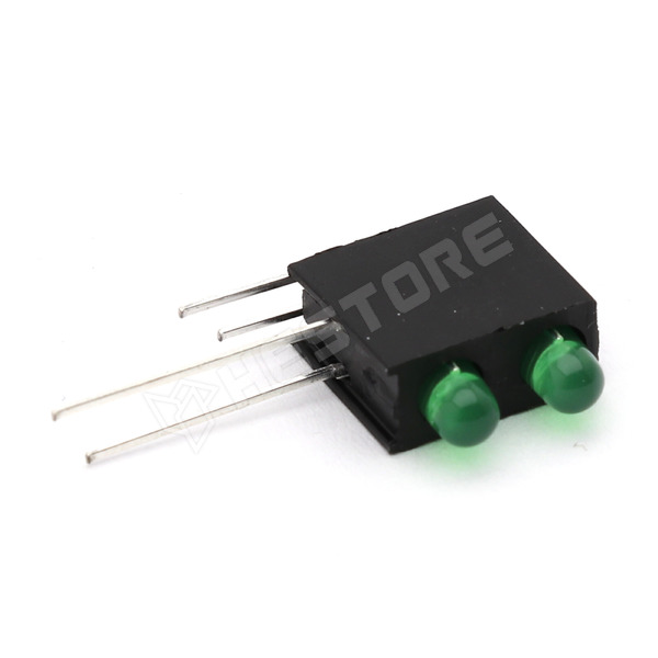 Dupla LED foglalat, 90°,2 x 3mm LED-el, zöld-zöld