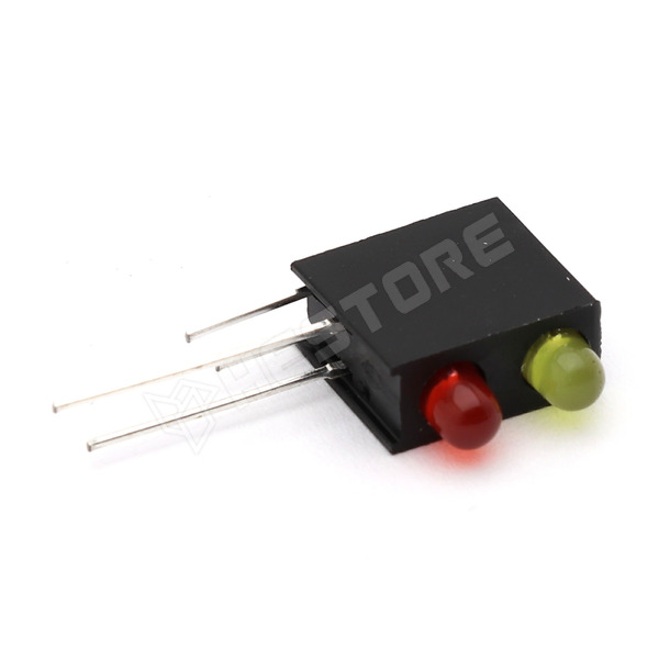 Dupla LED foglalat, 90°,2 x 3mm LED-el, sárga-piros