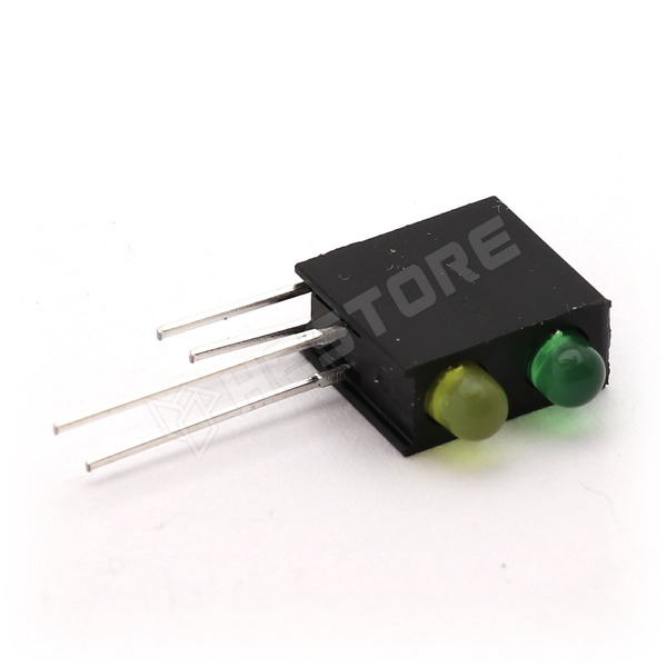 Dupla LED foglalat, 90°,2 x 3mm LED-el, zöld-sárga