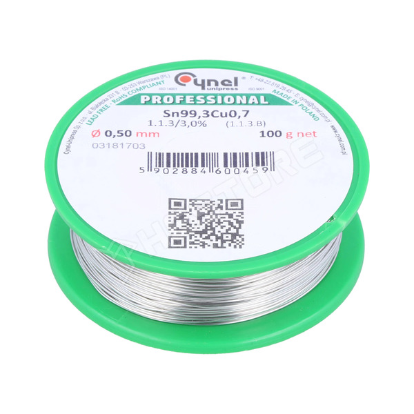 Ólommentes forrasztóón, 0.5mm/0.1kg, Sn99.3Cu0.7