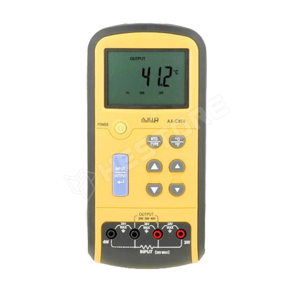 | Mérőműszer tulajdonságai | elemkimerülés kijelzése, 2-, 3- vagy 4-vezetékes mérési mód, 7 típusú RTD-vel működik: Pt10 (385), Pt50, Pt100, Pt200, Pt500, Pt1000, Pt100 (JIS), kimeneti jel szimuláció |