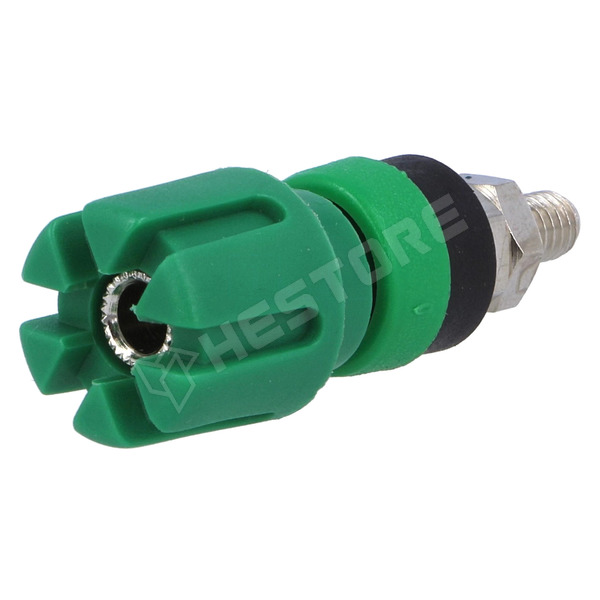 Banán aljzat, 4mm, 30A, 60V DC, nikkelezett, zöld