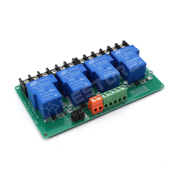 4 csatornás relé modul, 3V, opcionális vezérlés, optocsatolóval