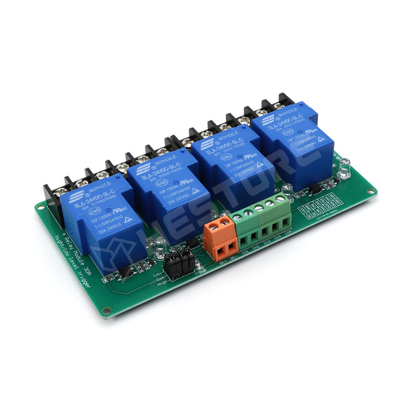 Univerzális 24V relé modul, 4 csatorna, optocsatolóval, vezérlő jel: Opcionális (jumper)