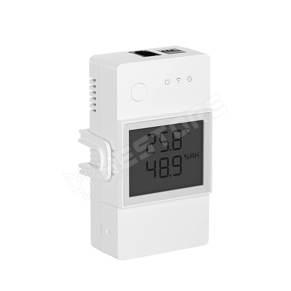 Sonoff TH Elite, WiFi-s intelligens vezérlő, hőmérséklet- és páratartalom / talajnedvesség érzékelő bemenettel, kijelzővel, segéd kontaktus kimenettel, ESP32, 230VAC, 20A