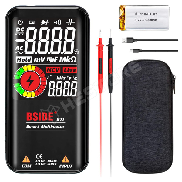 | Mérőműszer tulajdonságai | háttérvilágítás, dióda és áramkör kontinuitás teszt hangjelzéssel, hőmérséklet mérés, LED lámpa, True RMS, érintés nélküli feszültség kereső, 3.7V-os lítium akkumulátor, fázis kijelzés |